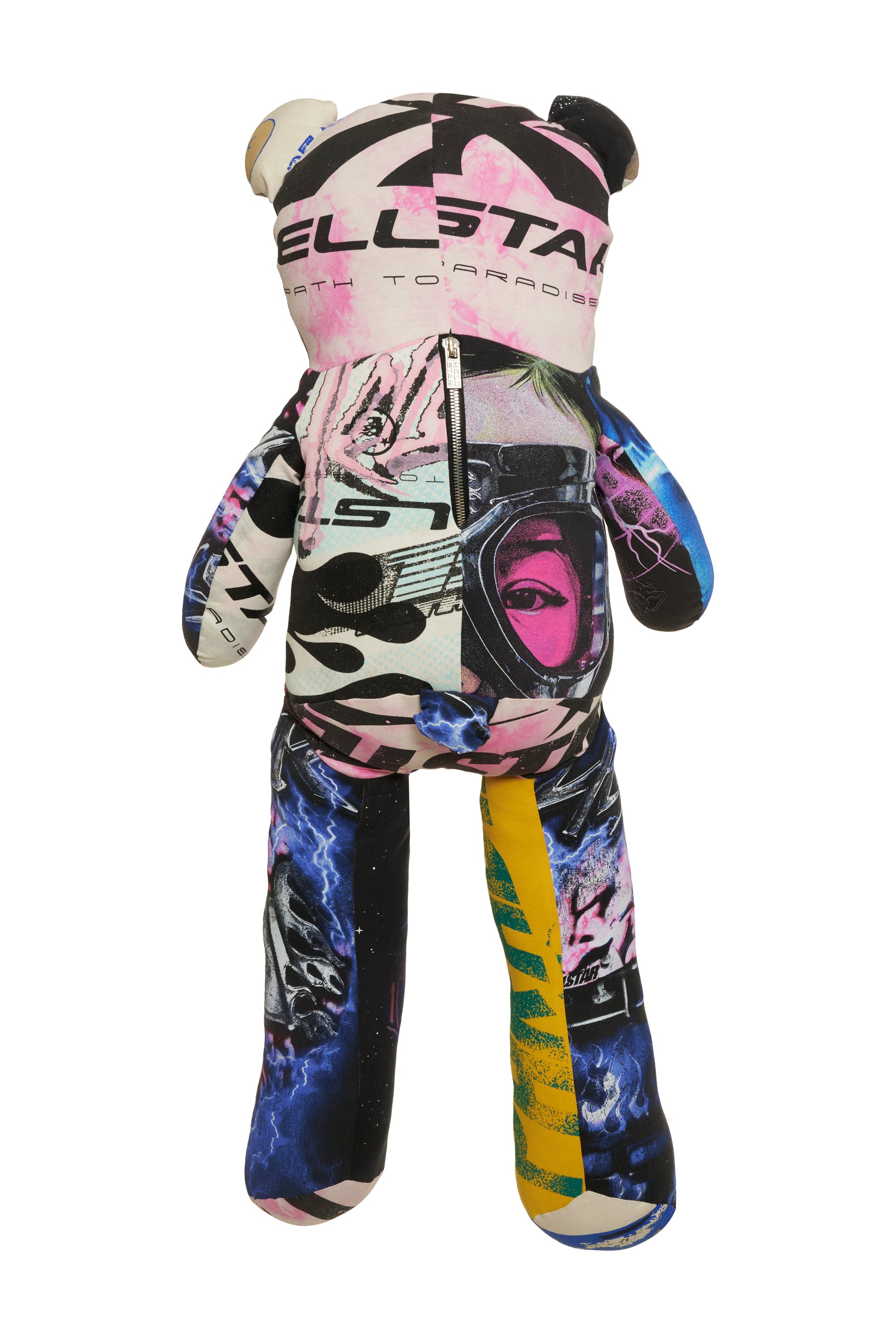 Upcycled bear featuring old Hellstar pieces. Every bear is a unique 1:1 mix of different pieces. Presented within a custom display box.