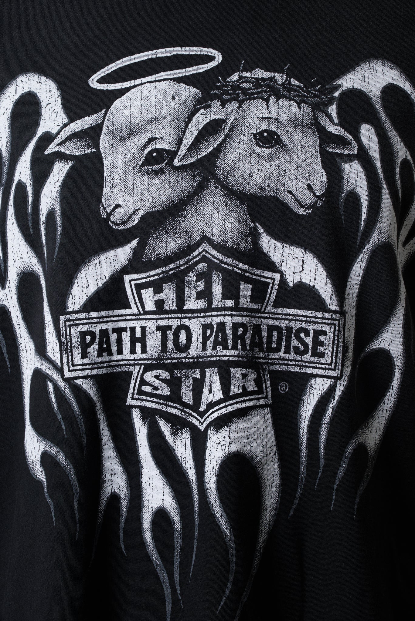 Shirt is made with custom milled cotton, finished with a vintage wash, all manufactured in Los Angeles. This garment features graphics jumbo screen printed on the Chest, Arms, and Back. Order true size, size up for an oversized fit.