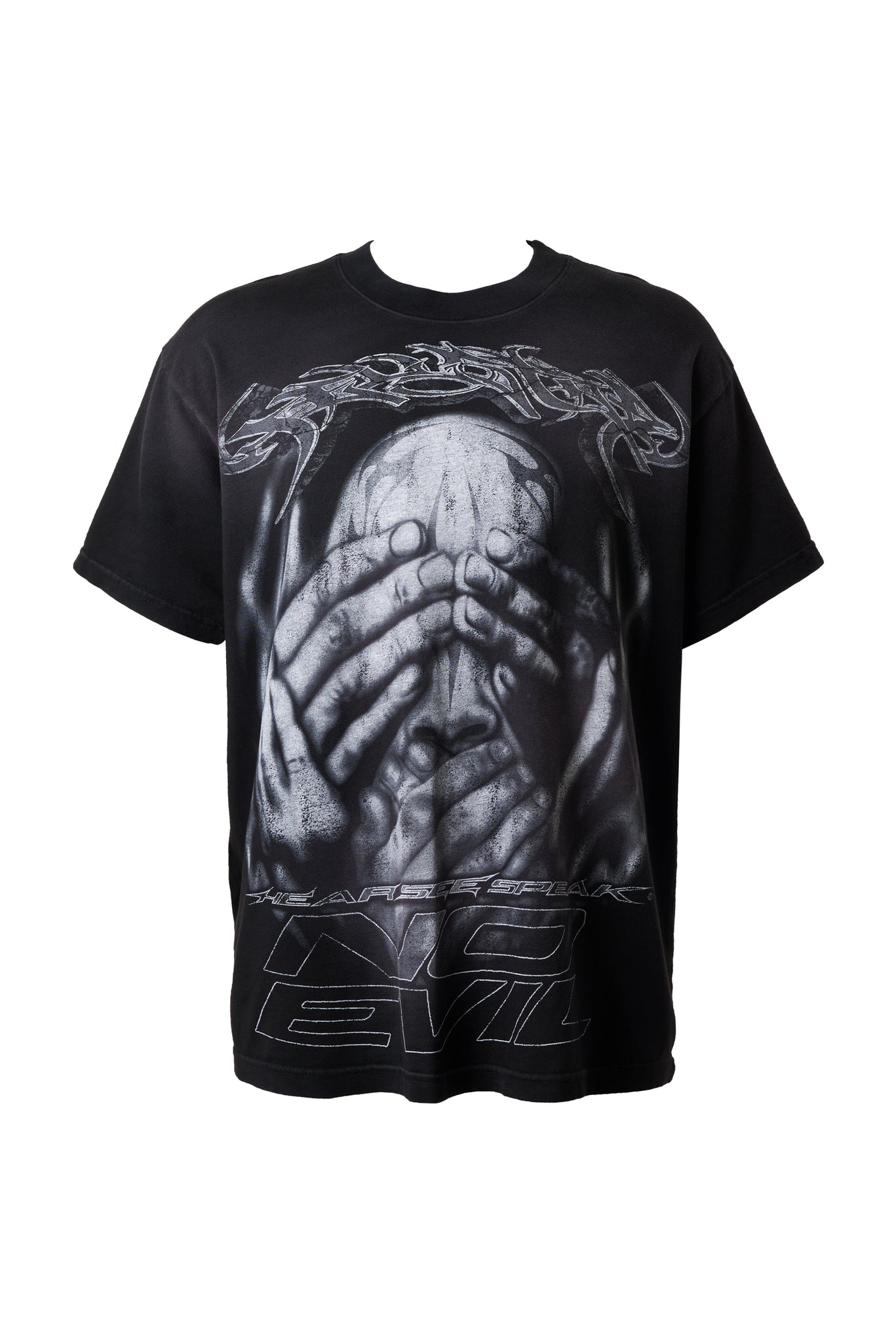 Shirt is made with custom milled cotton, finished with a vintage wash and potassium spray. All manufactured in Los Angeles. This garment features Hellstar graphics jumbo screen printed on the chest and back. Order true size.